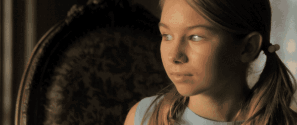 the first change I made to this concerned her motivation. like with her earlier tale, I didn’t think it worked for her to just volunteer the information. now she’s not telling a story for “funsies,” she’s telling it to get herself out of trouble. it needs to be a motivated telling – so the Aunt and Uncle look to her expectantly before she begins.
